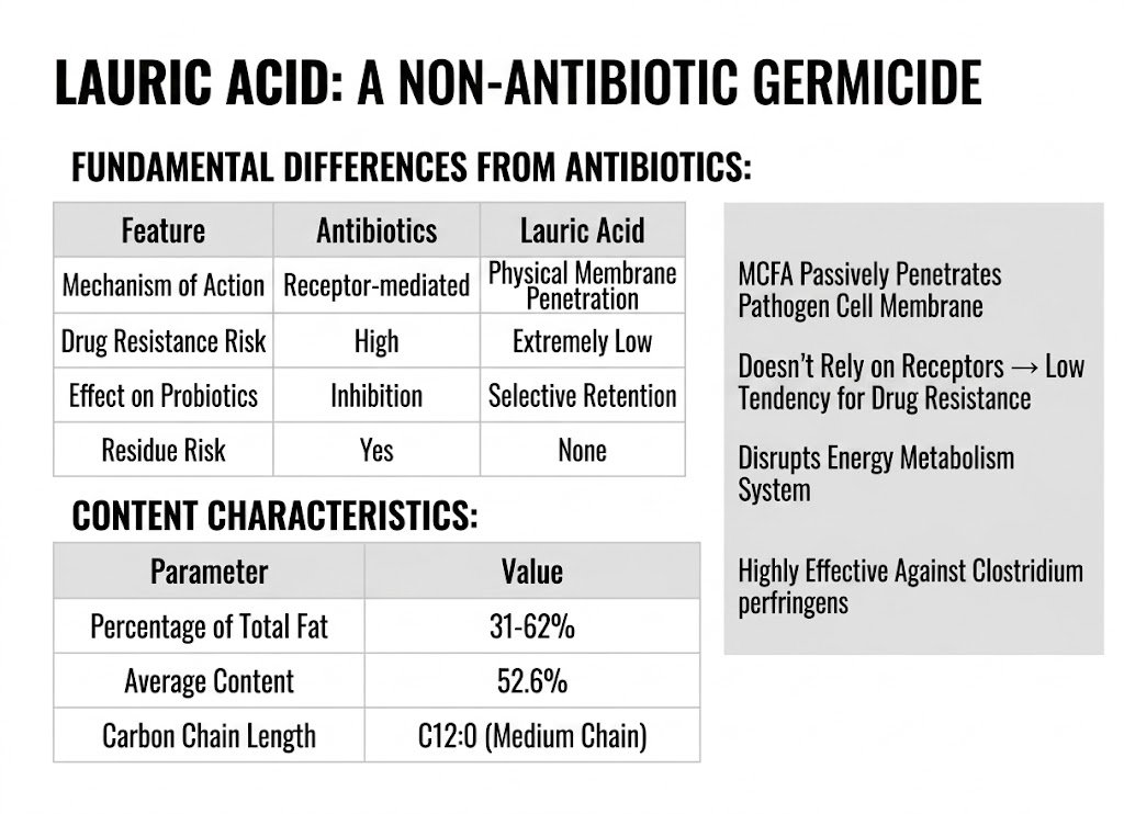 2. Medium-chain fatty acids, easily digestible, provide rapid energy, and improve growth rate and feed conversion ratio.